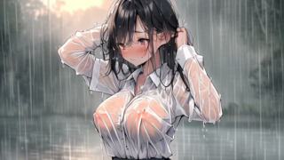 豪雨でびしょ濡れの制服JKイラスト
